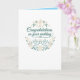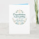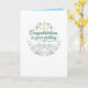A card with a doves and flowers motif "Congratulations on your Wedding" on the front, blank inside with a solid light blue background color, folded.