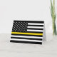 Cette mince carte de voeux jaune est parfaite pour les répartiteurs et peut être utilisée pour n'importe quelle occasion. Le design se compose d'un drapeau américain noir et blanc avec une fine ligne jaune au centre. À l'intérieur de la carte est un endroit où vous pouvez mettre votre propre message ou supprimer si vous voulez faire votre propre message manuscrit.
