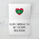 Belle conception comprend des ballons heureux et des bandes-tiques avec les mots "Joyeux anniversaire", recouverts aux couleurs du drapeau des Maldives. Le design est fini avec le coeur dans les couleurs du drapeau des Maldives et le message d'anniversaire. Les éléments sont entièrement personnalisables à l'aide de la fonction "Customisez-le !". Cette carte d'anniversaire colorée est le cadeau parfait pour votre ami des Maldives. © PaysDuMonde