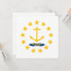 Ce dessin est orné du drapeau de l'État de Rhode Island, un État de la région de la Nouvelle-Angleterre aux États-Unis. L'Etat tire son nom de l'île de Rhode (connue aussi sous le nom d'île d'Aquidneck) ; cependant, la majeure partie de l'Etat se trouve sur le continent. L'État a des frontières terrestres avec le Connecticut à l'ouest, le Massachusetts au nord et à l'est, et l'océan Atlantique au sud par le Rhode Island Sound et Block Island Sound ; il partage également une petite frontière maritime avec New York. Providence est la capitale de l'État et la ville la plus peuplée de Rhode Island. Le surnom officiel de Rhode Island est "Ocean State" ; il est aussi parfois appelé "Little Rhody". La devise officielle de Rhode Island est "Hope". Le drapeau de l'Etat de Rhode Island est constitué d'une ancre d'or entourée de treize étoiles d'or (représentant les 13 colonies originales) ; un ruban bleu sous l'ancre porte la devise de l'Etat en or.