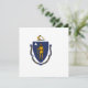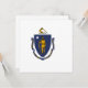 Ce dessin présente le drapeau de l'État du Massachusetts, officiellement connu sous le nom de Commonwealth du Massachusetts. C'est l'État le plus peuplé de la région de la Nouvelle-Angleterre dans le nord-est des États-Unis. Le drapeau contient un sceau bleu sur un arrière - plan blanc ; il porte la devise de l'Etat "Ense Petit Placidam, Sub Libertate Quietem" (qui se traduit par "Par l'épée nous recherchons la paix, mais la paix seulement sous la liberté".