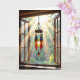 Carte d'anniversaire Boho. Un joli attrapeur en vitrail coloré est suspendu dans une fenêtre avec des poutres de soleil qui brille à travers.