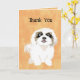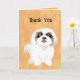 Cette carte de voeux humoristique a l'image d'un chien de chih tzu de dessin animé et dit, "Merci." A l'intérieur, c'est le drôle de jeu de chiens. — Donnez-le à un amoureux des chiens, un propriétaire, un vétérinaire, un éleveur, un gestionnaire, un bénévole de l'organisation secourue ou un amoureux des animaux qui a le sens de l'humour. — Voir d'autres dessins et produits pour chiens et animaux drôles à Alina's Pencil.