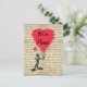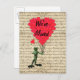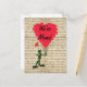 Une carte d'annonce de déménagement de changement d'adresse inspirée de l'ancien avec une grenouille drôle et mignonne tenant un bouquet de ballons rouges en forme de cœur, sur un fond de lettre en détresse, laissez facilement vos amis connaître votre nouvelle adresse, n'oubliez pas de changer le texte ou de supprimer.