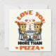Partagez une tranche d'humour et d'amour pour la Saint-Valentin avec notre carte "Je t'aime plus que la pizza" ! Avec une illustration de dessin animé hilarante représentant deux personnes en forme de pizza qui profitent d'un dîner aux chandelles (avec encore plus de pizza !), cette carte est parfaite pour les amateurs de pizza qui ont le sens de l'humour. Le design mignon et drôle allie amour et rires avec une touche originale sur le thème de la pizza. Le message à l'intérieur dit : "Tu es le seul à pouvoir voler une tranche de mon cœur ! (Mais ne touche pas à ma pizza.)" Que ce soit pour votre partenaire, meilleur ami ou un autre passionné de pizza, cette carte est un moyen délicieux de dire "Je t'aime !" Modifiez le texte de la page produit ou utilisez l'outil de conception pour changer le style ou la couleur de la police.