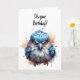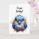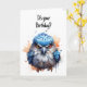 Illustration aquarelle mignonne d'un oiseau bleu grincheux sur cette carte d'anniversaire drôle et sarcastique.