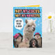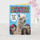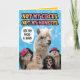 Ce lama est entouré de singes ! La carte dit, "Pas mon cirque. Pas mes singes." Le lama dit, "Pas mon problème !" Un petit jeu de mots. A l'intérieur de la carte dit : "C'est VOTRE cirque et VOS singes !Joyeux anniversaire !
