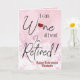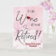 Je peux vin tout ce que je veux, je suis à la retraite ! Cette drôle de carte de retraite est l'idée cadeau parfait pour un retraité. Surtout celui qui a hâte de se détendre avec un verre de vin à leur retraite. Parfait pour les infirmières, les enseignants, les collègues et les meilleurs amis. Joli arrière - plan rose étincelant avec d'élégantes citations de police de typographie. Ajoutez un nom personnalisé et personnalisez le message à l'intérieur.