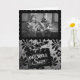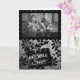 Une carte get-well de style vintage et humoristique présente un couple enchanteur sur une photo en noir et blanc, accompagné de leur chien surdimensionné reposant sur les genoux. La photo est placée dans un cadre rectangle de bord de pétoncle noir, l'accueil avant "GET WELL BIENTÔT" est placé sur un plateau d'ardoise film vintage. L'arrière - plan est recouvert d'un dégradé noir et gris, complété par un papier peint fleuri vintage. A l'intérieur de la carte on peut lire : "VOTRE CHIEN MANQUE VOTRE LAP !"
