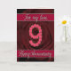 carte du 9ème anniversaire avec roses et feuilles