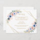 Mariage moderne détails carte, floral & géométrique.Dans les couleurs Or, Peaches & Bleu.