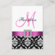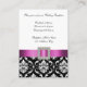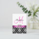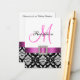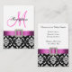 Carte De Boîtier De Réception Rouge Noir Blanc Damas. Elke Clarke©. Carte graphique sous licence. Elégant motif damassé noir et blanc avec une photo empreinte de ruban en satin rose, broche carré avec photo empreinte de diamants blancs, initiale monogramme rose sur le devant et les informations de réception de mariage sur le dos de la carte. Customisez avec vos informations et monogramme.