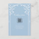 Cette carte de boîtier mariage dégage élégance et raffinement. L'arrière - plan bleu doux offre une toile fraîche et sereine qui complète parfaitement les motifs floraux blancs complexes autour des bords. La carte du programme est écrite dans une police moderne et audacieuse, soulignant l'importance de l'événement. Le reste du texte est dans un script classique et gracieux, créant un contraste harmonieux. Dans l'ensemble, ce design allie magnifiquement typographie moderne et élégance intemporelle, ce qui en fait l'endroit idéal pour toute célébration mariage romantique. F004