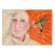 Beau, frappant Cassandra obtient une visite de son colibri préféré. Une carte de note saisissante pour toute occasion. Peinture en pastel originale par Laura J. Holman ©2011.