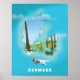 Carte du Danemark illustrée affiche de voyage imprimé.