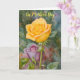 Ma création originale est présentée sur cette carte florale de la fête des mères, composée de ma photographie d'une fleur de rose jaune, traitée avec un effet aquarelle pour un aspect illustré et fantaisiste. Le recto de la carte indique « Le jour de la fête des mères ! » et l'intérieur de la carte indique « En pensant à vous aujourd'hui avec beaucoup d'amour et de câlins ! Bonne fête des mères ! ». Une carte sincère et formidable pour toute maman qui aime les fleurs et la nature.
