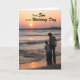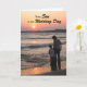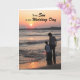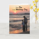 Une belle photo originale de c.a.teresa d'une mère et d'un fils sur la plage avec un coucher de soleil d'été doré pour un jour spécial de mariage de fils. Un beau message chaleureux de maman à l'intérieur qui peut être personnalisé avec des noms ou des photos.