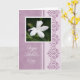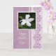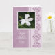 Carte du jour de mère dans le pourpre avec une photographie d'une fleur blanche du jardin et d'une conception élégante.