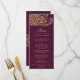 Cette carte de menu en cachemire d'or indien est parfaite pour un mariage élégant. Le design mehndi présente un joli mandala au henné floral et un motif paisley sur un arrière - plan bordeaux. Ce menu peut être utilisé pour une réception de mariage, un dîner de répétition ou tout événement. Remarque : Ce design ne comporte pas de véritable feuille d'or. C'est un graphisme de haute qualité fait pour ressembler à du papier doré.