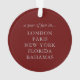 Rappelez-vous votre année de destinations et de vacances extraordinaires en écrivant dans les villes, les états ou les pays que votre famille a visités cette année. La carte du monde de l'argent sera belle sur un arbre de Noël, et vous pouvez choisir la couleur arrière - plan si vous voulez autre chose que le bordeaux montré.