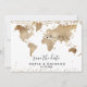 Planifiez votre mariage dans une destination romantique ? Invitez vos invités avec cette belle invitation avec une carte du monde en or et votre destination personnalisée marquée d'un cœur mobile.