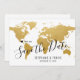 Faites savoir à vos invités la date de votre mariage de destination romantique avec cette belle carte du monde en or "save the date" avec votre destination personnalisée marquée d'un marqueur de localisation en forme de cœur éditable et mobile. Déplacez le cœur et tapez le nom d'une nouvelle ville ou d'un nouveau pays pour personnaliser complètement cette invitation de destination sur le thème du voyage avec une carte du monde en or.