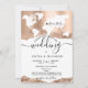 Planifiez votre mariage dans une destination romantique ? Invitez vos invités avec cette simple invitation moderne en Rose Gold avec une carte du monde et votre destination personnalisée marquée avec le cœur amovible.