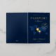 Cette belle faire-part de mariage moderne est conçue pour ressembler à un passeport, avec une carte du monde et une crête monographique en feuille d'or avec deux étoiles de mer en première page. Le design inspiré du passeport est parfait pour un mariage de destination, un mariage d'île de plage tropicale ou un mariage à thème d'aventure. Cette invitation est parfaite pour les couples qui veulent donner à leur mariage une touche unique et mémorable.