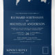 Invitation vos invités avec cet élégant faire-part de mariage à thème de voyage avec une belle carte du monde argent sur un arrière - plan bleu marine. Déplacez facilement le coeur à l'endroit désiré en cliquant sur le bouton personnaliser et ornez cette carte avec votre photo préférée pour en faire une invitation unique.
