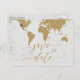 Cartes postales de mariage avec carte du monde en feuille d'or Enregistrer la date avec EMPLACEMENT DU CŒUR DÉPLAÇABLE cliquez simplement sur le lien personnaliser davantage pour positionner votre cœur Consultez ma boutique pour voir l'ensemble de la collection de mariage avec ce design !