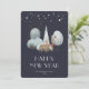 Jolie aquarelle Bonne année carte avec une scène hivernale avec un doe et un dollar portant une écharpe.