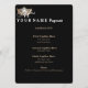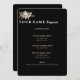 Créée sur 110 lb. stock de carte semi-brillante pour une impression photo optimale, cette carte de programme de déjeuner de style classique vous attend pour personnaliser avec vos propres informations. A des angles arrondis pour un look élégant et tout Noir pour une liaison élégante. Le texte est fait en blanc et en taupe et dispose d'une couronne d'or brillante en haut à gauche. Une touche sympathique pour votre brunch primé aussi. Vous devez customiser cet élément. Choisissez des styles et des couleurs de texte, etc.