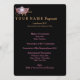 Créée sur 110 lb. stock de carte semi-brillante pour une impression photo optimale, cette Belle torsion sur une carte de programme de déjeuner de style classique vous attend pour personnaliser avec vos propres informations. A des angles arrondis pour un look élégant et tout Noir pour une liaison élégante. Le texte est fait dans une couleur Brown-or clair et rose et comporte une impression de couronne rose et argent brillant en haut à gauche. Une touche sympathique pour votre brunch primé aussi. Vous devez customiser cet élément. Choisissez des styles et des couleurs de texte, etc. Espace sur le dos pour personnaliser avec des informations supplémentaires.