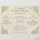 Ce programme de mariage à l'allure vintage fait sur notre plus grande invitation de taille est le complément parfait à nos invitations de dentelle blanche antique et burlap. Modifiez le texte selon vos besoins et sélectionnez un style de papier correspondant. Recommandé sur du papier feutre ou de lin.