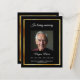 Un programme élégant de 2 pages. Arrière - plan noir, cadre faux or, espace pour une photo. Personnalisez et ajoutez le nom, les dates et votre texte. 1 feuille = 1 programme imprimé de bord en bord.