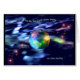 Carte avec mon oeuvre numérique originale de la planète Terre dans l'espace entourée d'aurores colorées, d'étoiles et de notes de musique avec le message "le jour où la Terre cesse de chanter, nous arrêtons de danser".