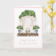 This Easter card has a watercolor front door with an easter basket on the front porch with text that says "Happy Easter from Our House to Yours." Colors used include olive green, pink, grey, and brown. All text is editable to meet the needs of your event.