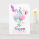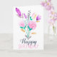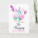 Un pastel élégant, girly doux peint à la main aquarelle florale avec des fleurs de champs abstraits rose, bleu, violet et vert avec une calligraphie typographie de pinceau moderne disant joyeux anniversaire.