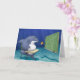 Voici un requin qui essaie de comprendre la différence entre les surfeurs et les phoques, pour qu'il ne mange plus de surfeurs par hasard. La carte est vierge à l'intérieur et peut être personnalisée selon vos envies.