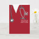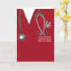 Carte de graduation amusante de l'école de soins infirmiers illustrant des gommes rouges à l'hôpital. Modifiez le texte pour personnaliser votre infirmière préférée.