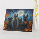 Libérez l'esprit éffrayant avec ce design d'Halloween étrange avec une meute de chiens sous un ciel sombre et clair de lune, entourée de chauves-souris volantes et de citrouilles brillants. Parfait pour ceux qui aiment une touche de plaisir effrayant avec leurs amis en fureur !