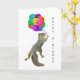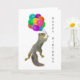 Un écureuil livre un tas de ballons colorés. Grande carte pour un anniversaire, ou changer le texte pour customiser.