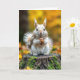 Un écureuil blanc moelleux portant une écharpe est perché sur une souche d'arbre recouverte de mousse, tenant un cordon avec les deux pattes. Le texte est modifiable.
