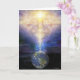Image d'art du méditant assis sur Terre dans l'espace avec la ville de lumière paradisiaque brillant au-dessus par Daniel B. Holeman.