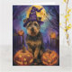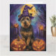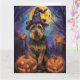 Carte Éffrayant Airedale Halloween sorcière et Citrouill
