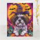 Carte Éffrayant Malti Tzu Chien Halloween Sorcière Et Ci