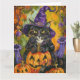 Carte Éffrayant Tuxedo Chat Halloween Sorcière Et Citrou