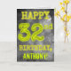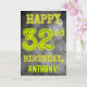 L'avant de cette carte de voeux mystérieuse et modifiable à thème d'anniversaire comporte le message "HAPPY 32nd BIRTHDAY" avec des personnages ayant une apparence luisante d'aura, sur un motif arrière - plan gris éffrayant d'inspiration brouillard nuageux. Le devant contient également un nom de destinataire modifiable. L'intérieur comporte un message d'anniversaire personnalisable. Une carte de voeux d'anniversaire customisée comme celle-ci pourrait être utilisée pour envoyer un message de voeux d'anniversaire à quelqu'un qui célèbre son trente-deuxième anniversaire. [~Z0000364]