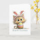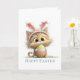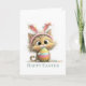Featuring a playful, wide-eyed kitty dressed with bunny ears and holding a colorful Easter egg, this design is perfect for anyone who loves fun, whimsical holiday cards.