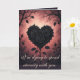 Une floraison improbable : un bouquet en forme de cœur de roses noires étroitement enroulées, leurs pétales disposés de manière si dense que les coutures entre les fleurs individuelles se fondent en une seule forme sculptée. Les tons de charbon font que le cœur entier se sent à la fois lourd et délicat. La scène est encadrée par des branches grêles et des boutons non ouverts, certains terminés par de minuscules épines. L'arrière-plan est un lavis chaud et lumineux de rose et de roses poussiéreux qui s'estompe vers des bords plus sombres. L'image équilibre les opposés : lumière et obscurité, symbolisme romantique et touche de mélancolie.